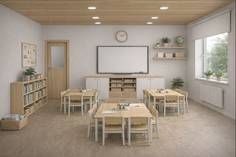 Gli spazi sono pensati per sostenere l’attenzione, la collaborazione e la creatività. Le aule sono organizzate in modo flessibile, per facilitare il lavoro cooperativo, il confronto e il movimento. Anche i momenti di pausa fanno parte del percorso educativo: aiutano i bambini a riconoscere i propri tempi di attenzione e a sviluppare gradualmente autonomia e autocontrollo.